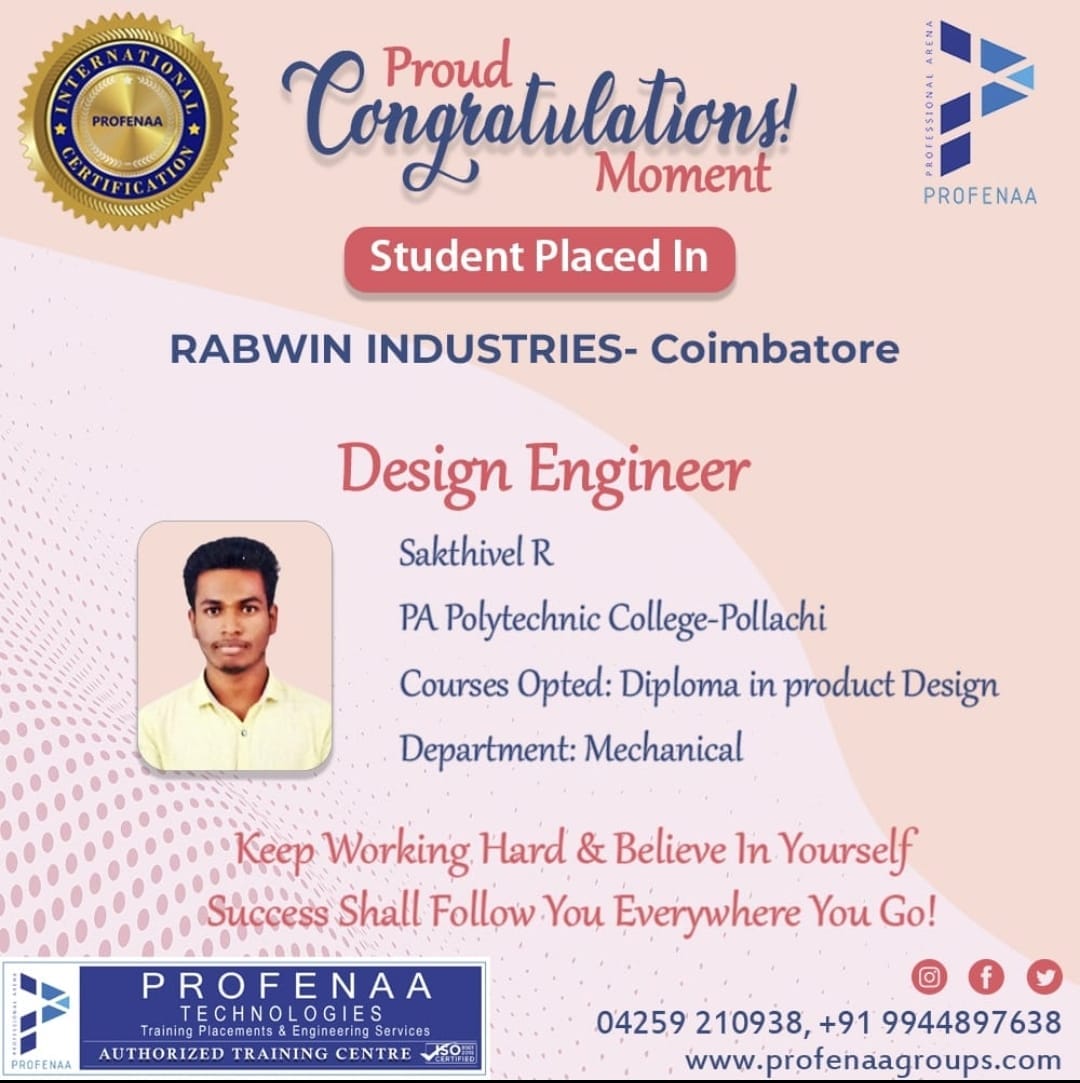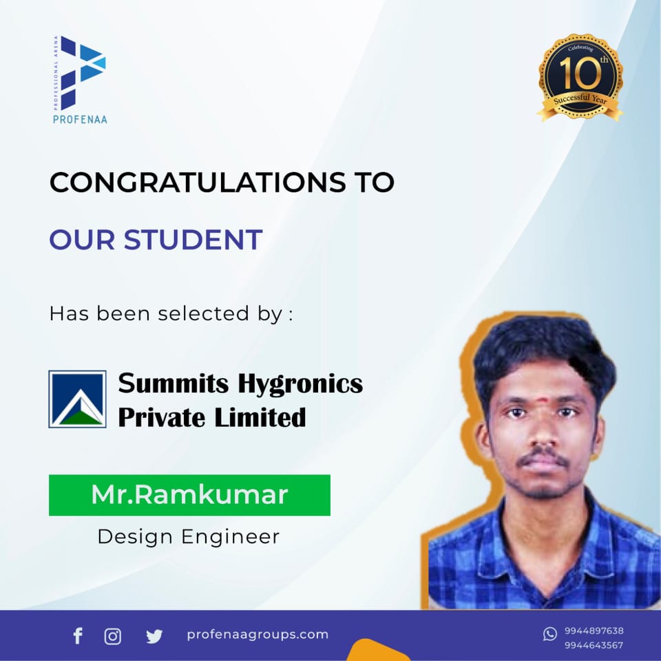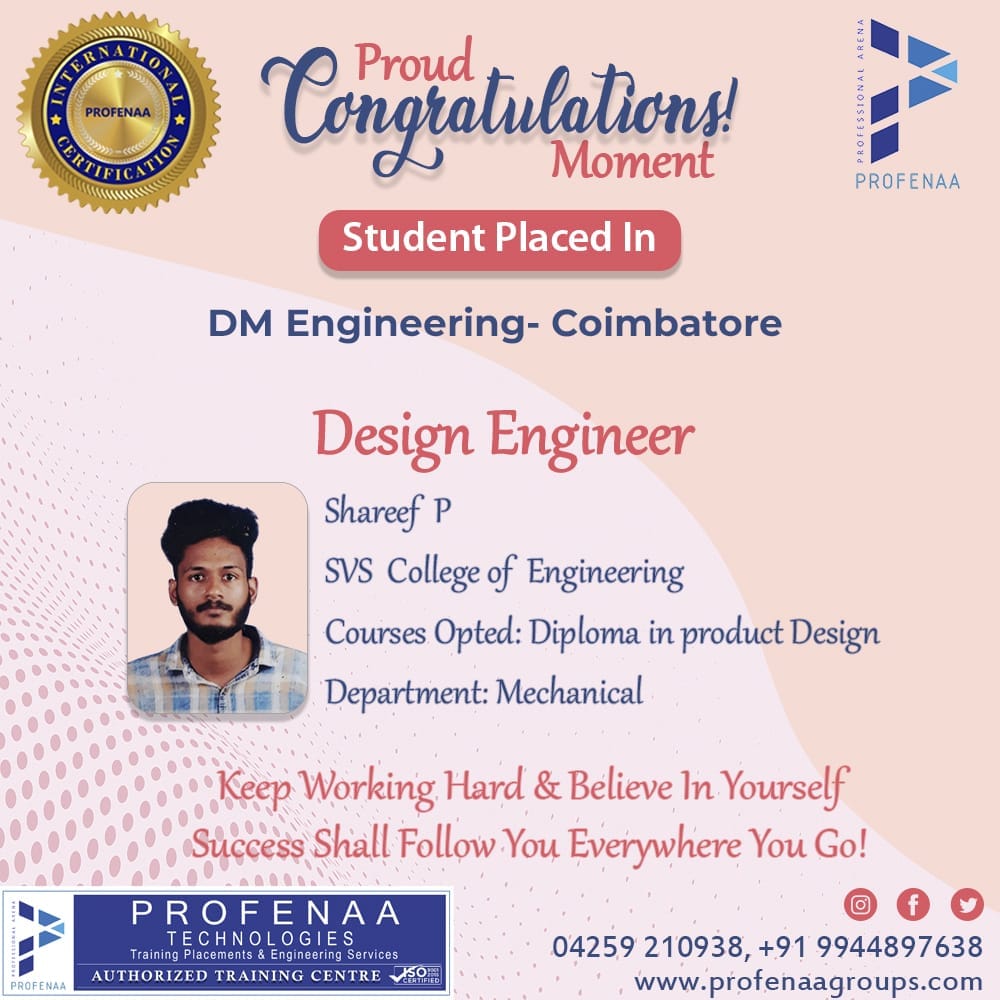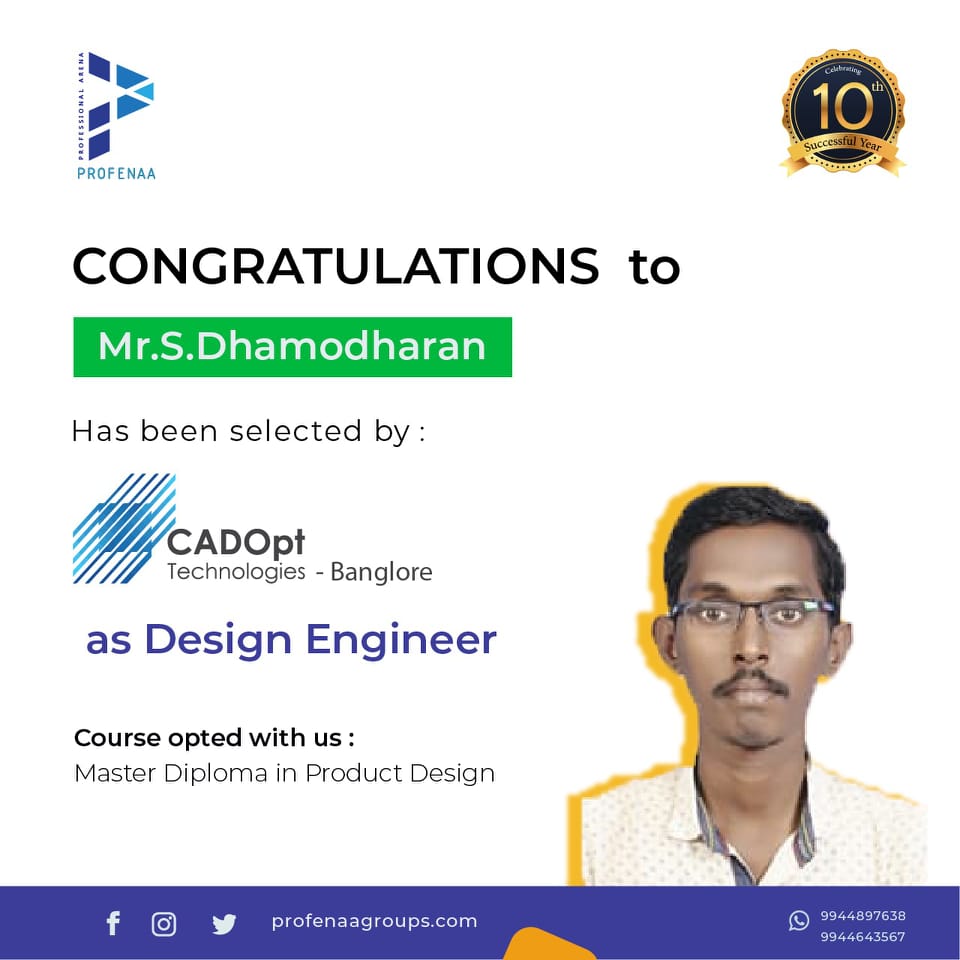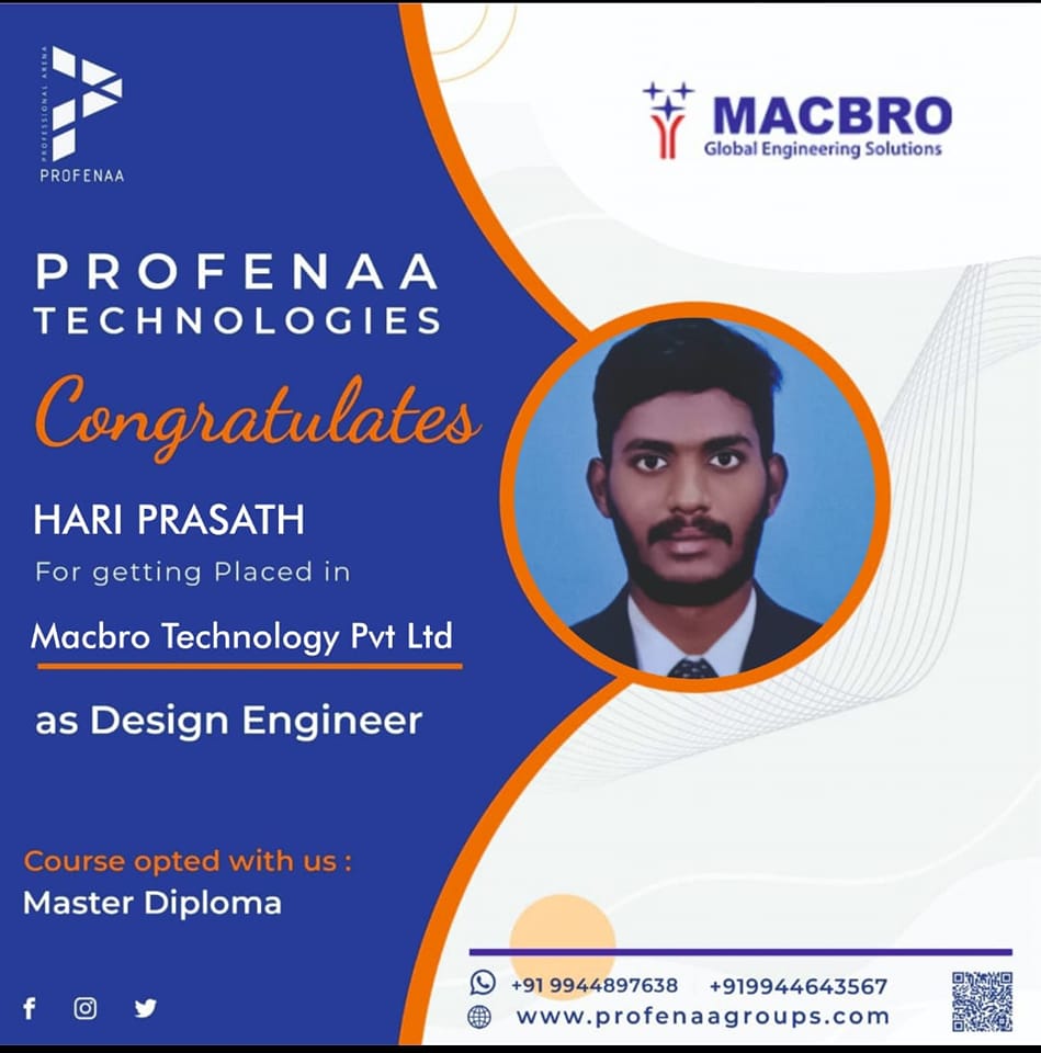 "Profenaa gave me the skills and confidence to land a job as a Design Engineer!"