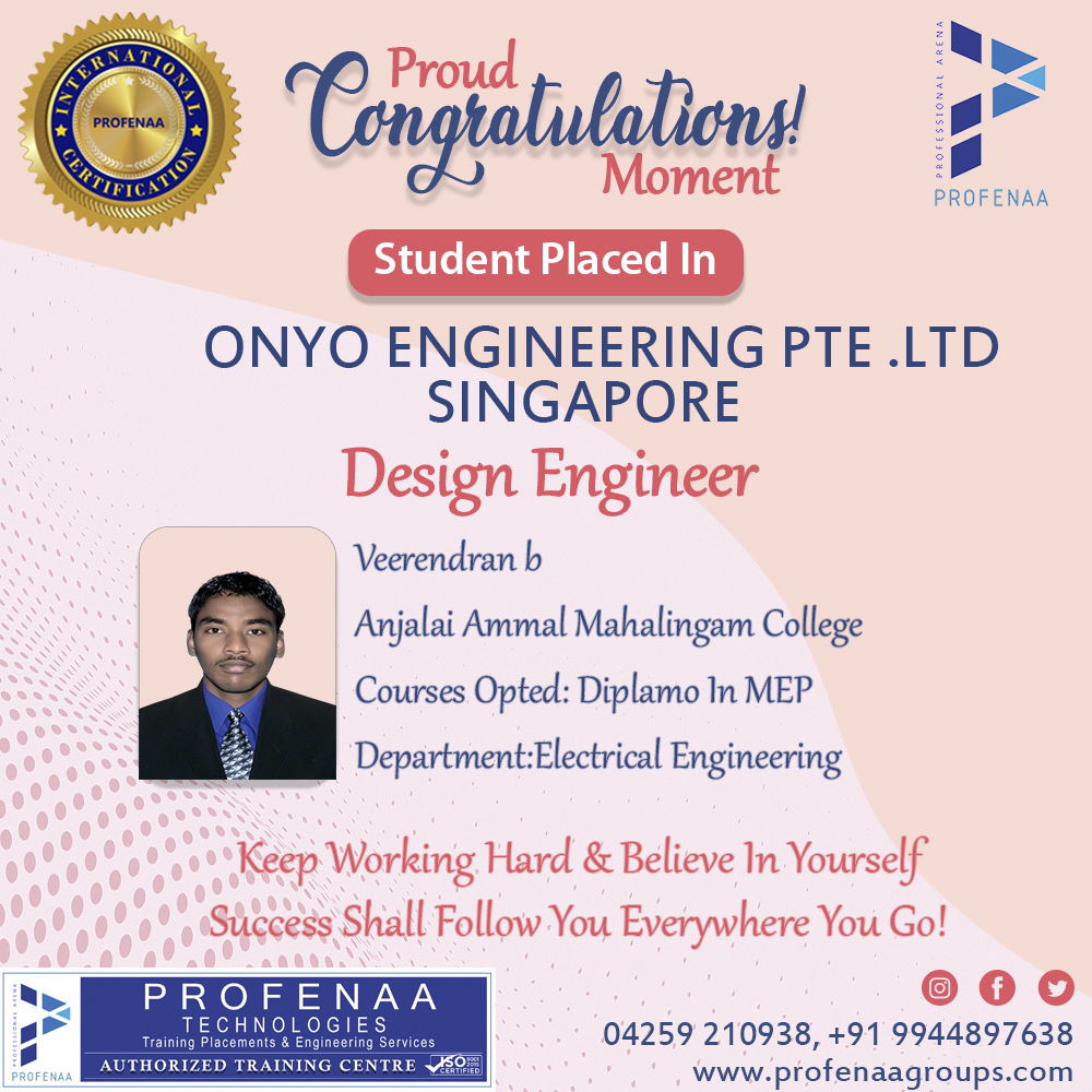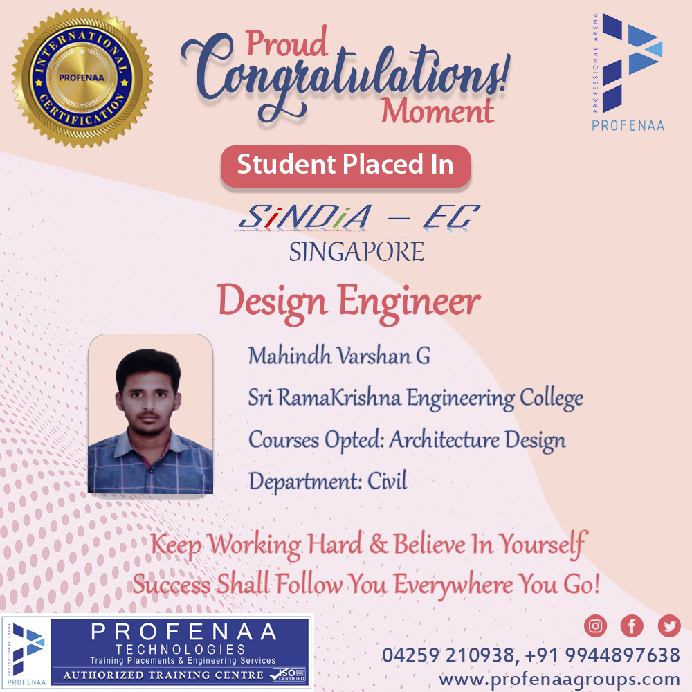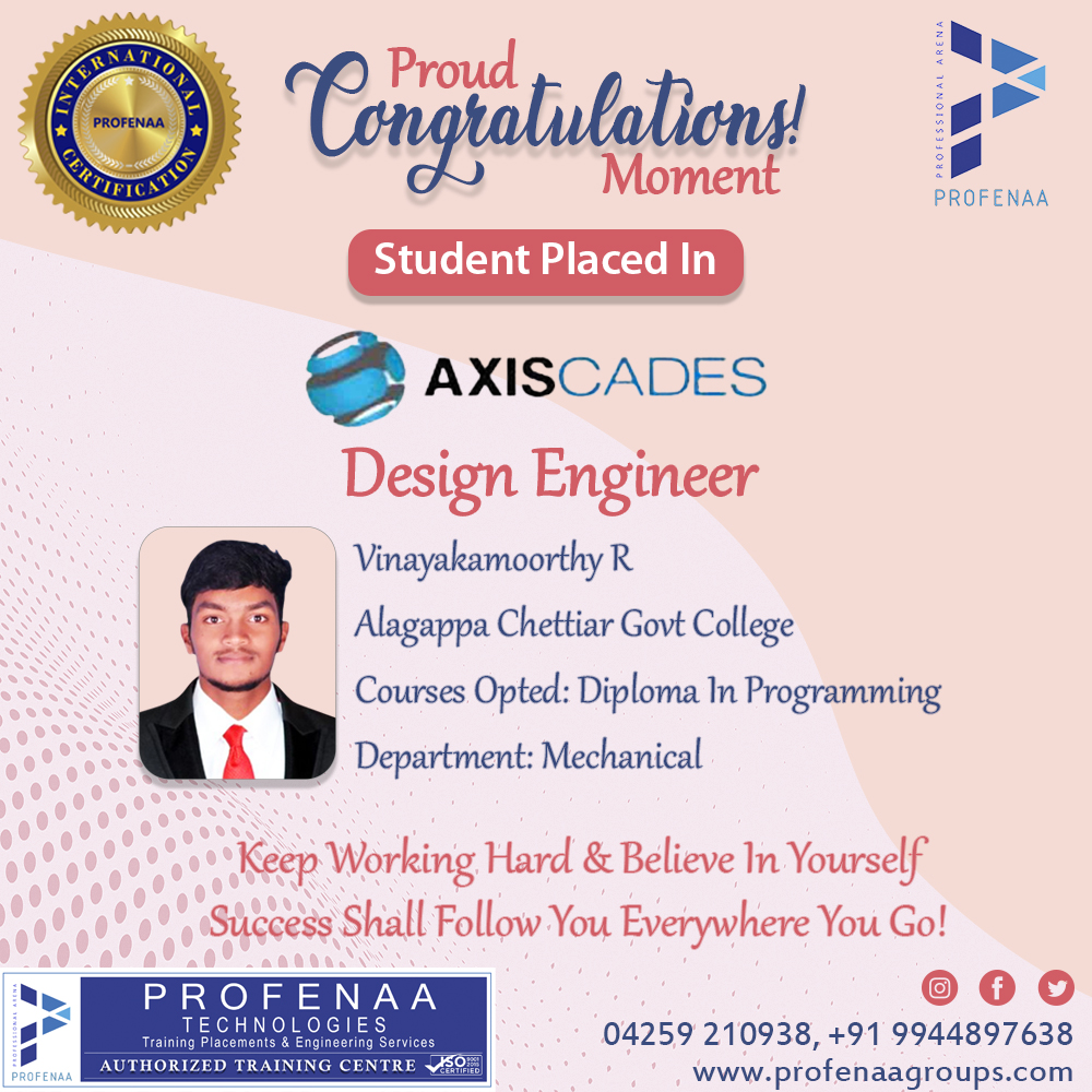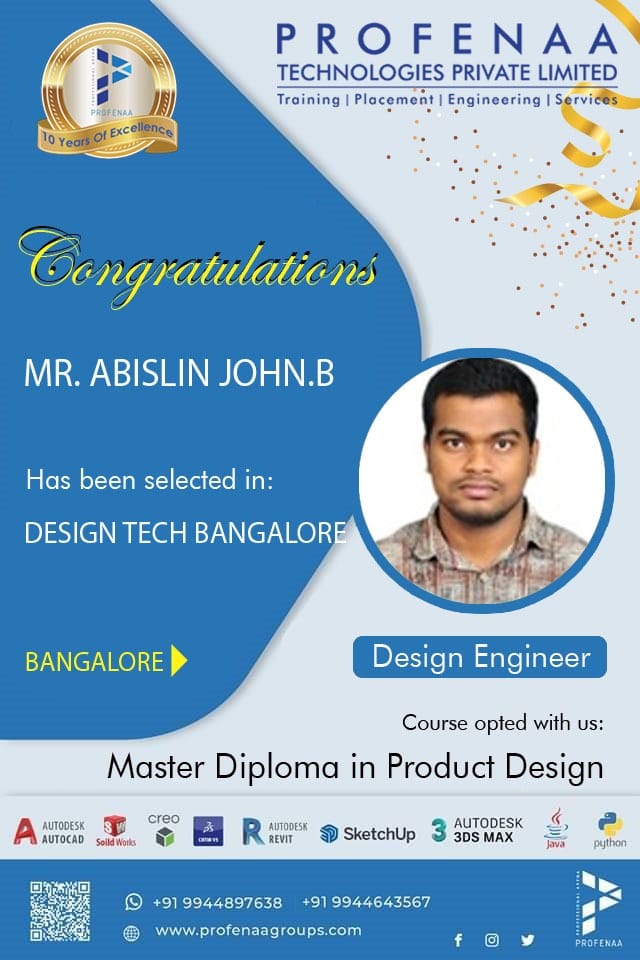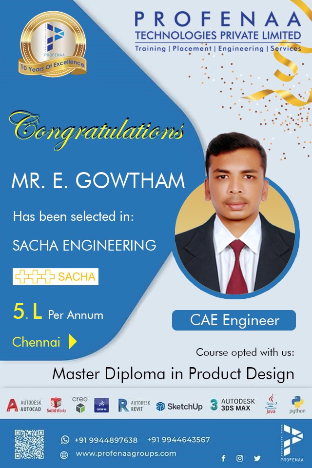 "Profenaa gave me the skills and confidence to land a job as a Design Engineer!"